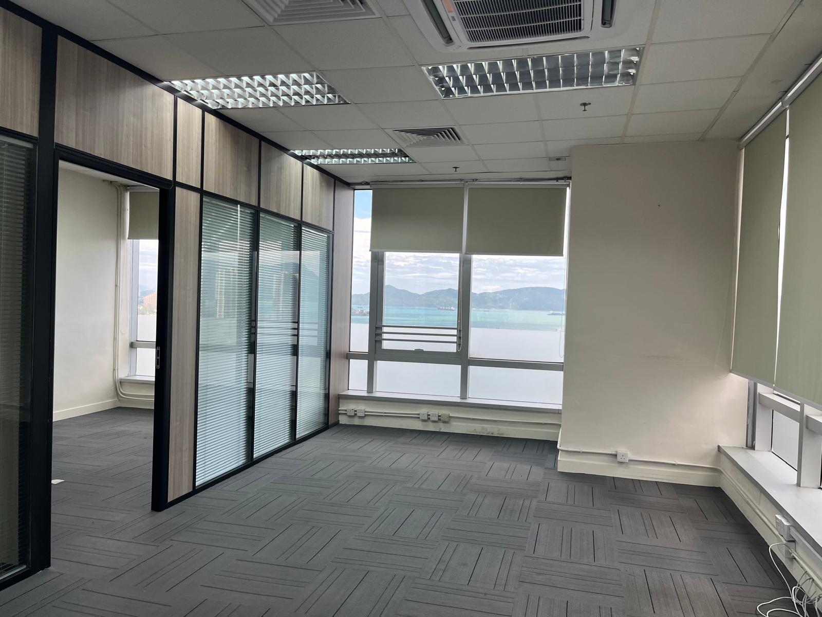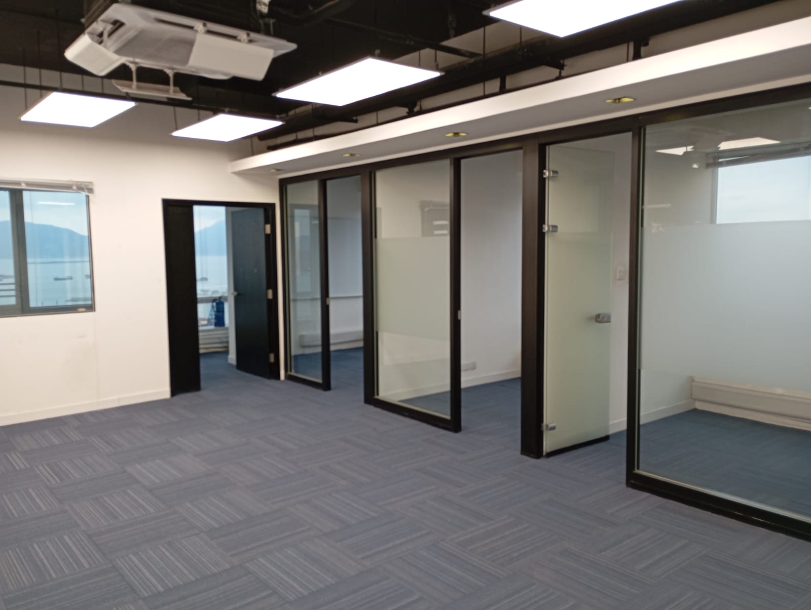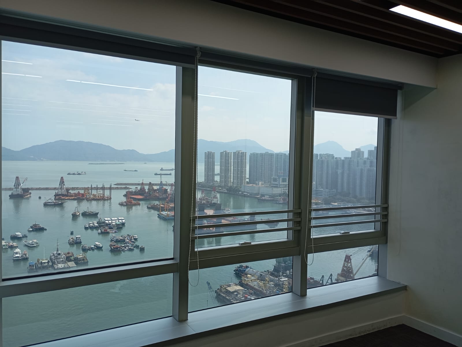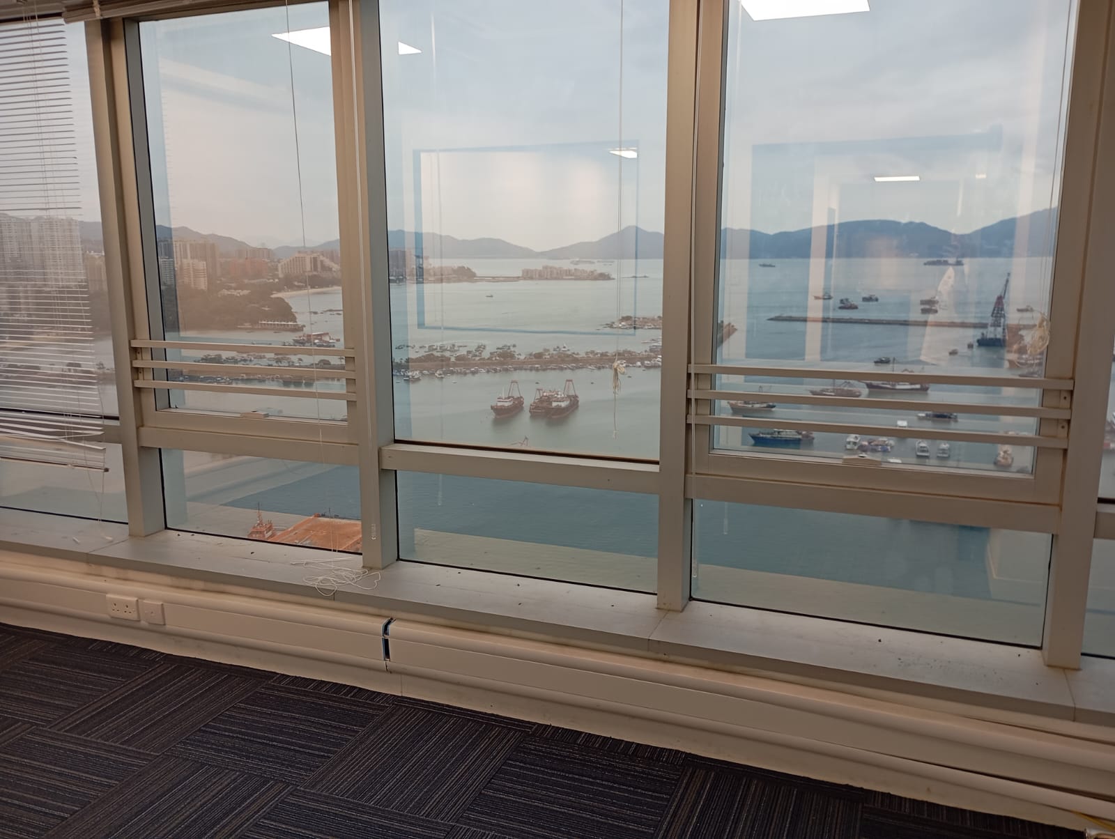 全海景高層優質辦公室 高層全海景景觀,特大曲尺型落地玻璃,附精緻裝修,單位面積1327尺。平租免佣金,租金包(差餉/地租/管理費及冷氣費)。