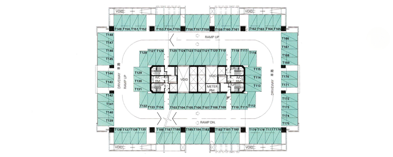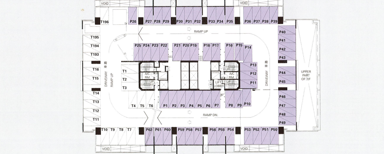 私家停車場: 8/F至10/F 合計196個 (業主出租或自用)。